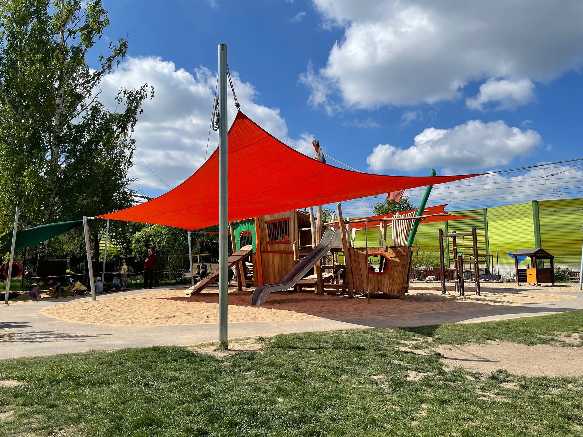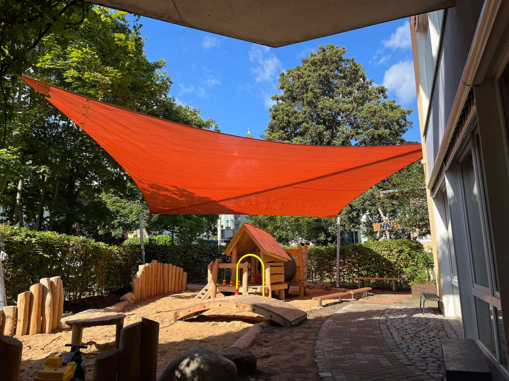 Sand kann sich unter direkter Sonne extrem aufheizen. Durch die hohe Verschattungsquote unserer Gewebe verhindern wir, dass der Spielbereich zur Hitzefalle wird. Das Ergebnis: Ein angenehm kühler Rückzugsort, der zum stundenlangen kreativen Spielen einlädt.