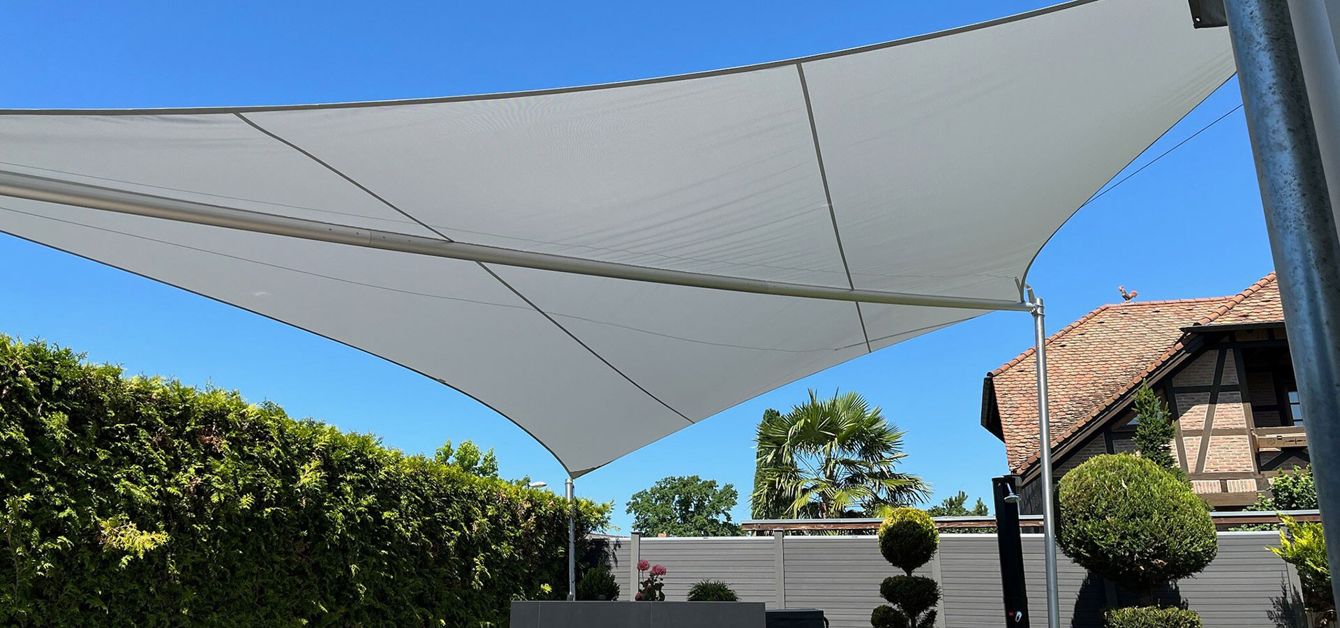 Ob freistehende Sonnensegelanlagen oder speziell entwickelte Systeme für Innenhöfe, Fassaden, Hausinnen- oder Hausaußenecken – wir finden die perfekte Befestigungsmöglichkeit für Ihr Sonnensegelsystem. Sehen Sie hier einige Beispiele.